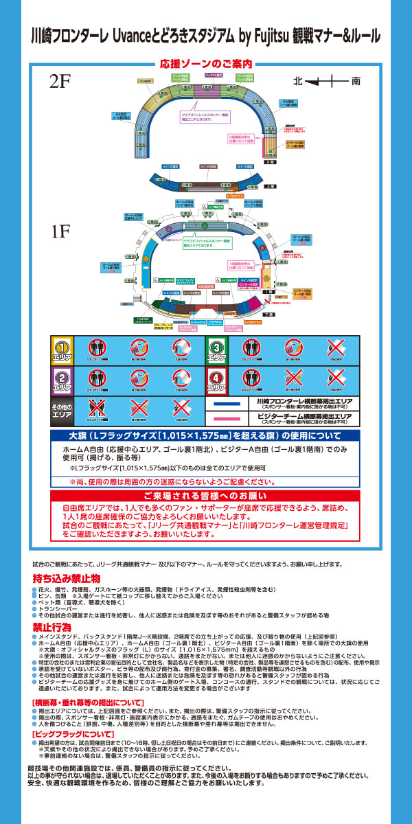 川崎フロンターレでは、『安全・安心・快適』なスタジアムを目指し引き続き、尽力いたします。皆様のご理解とご協力をお願い申し上げます。