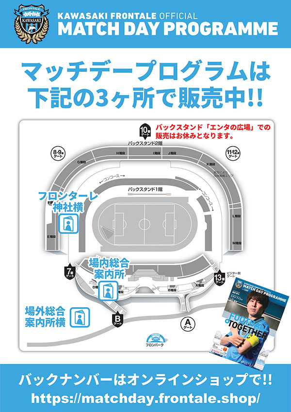 ・販売場所: メインスタンド前広場(場外総合案内所横)、フロンターレ神社横(ホーム側ゴール裏)、場内総合案内所(メインスタンド)