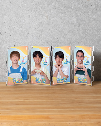 アクリルキーホルダーとしてカバンなどに取り付けるのはもちろん、ブロックになっているので自由自在に楽しむことができるグッズです! 屏風風にしたり、三角形や四角形など楽しみ方は無限大です!