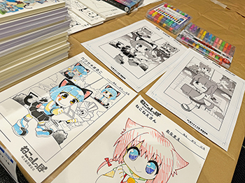 | 内容 | 本を作る過程で発生した印刷用の無地の端紙を使って塗り絵をしよう! また、今回は、川崎市の画材メーカーであるデリーターさんにご協力いただき、漫画用スクリーントーンの切り貼り体験もできます。お土産にお絵描き用紙をお渡ししますのでどうぞご活用ください。 |