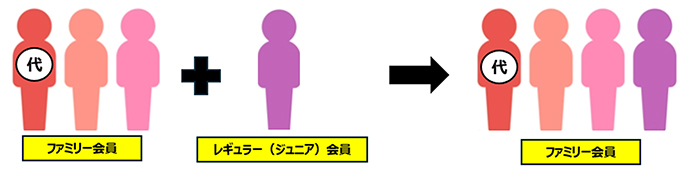 A レギュラー会員/ジュニア会員からすでに入会済みのファミリー会員へ統合