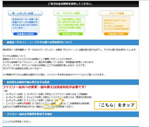 D「ファミリー会員の代表者を変更」する場合はこちら