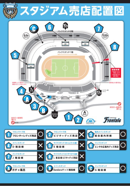 TEL 044-767-6111(営業時間 11:30~21:00/月曜定休 ※月曜日が祝日の場合は翌火曜日がお休みとなります。またホームゲーム等開催日は変更の可能性あり)