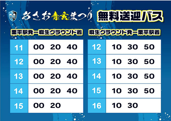 小田急多摩線「栗平」駅から麻生グラウンドまで、無料送迎バスを運行いたします。
