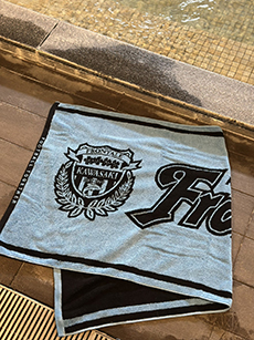 ふわっとした触り心地に加えて吸水性も抜群の一品。多くの方が毎日使うバスタオルだからこそ、おフロ(風呂)あがりはフロンターレのバスタオルで!
