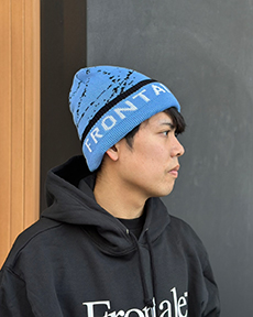 冬の定番アイテムのニットキャップ! 水色をベースとし、伸縮性のある素材なので、どの年代でも着用いただける商品です。U等々力を青に染めましょう!
