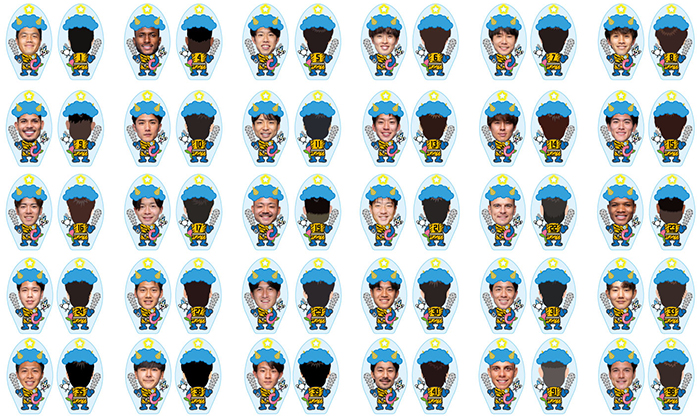 | 注意事項 | ・スタッフがランダムでお渡しする商品がございます。 ・商品は今シーズンより前のシークレットパッケージで製作・販売しているものがございます。 そのため、特性上「同一の選手が連続で出る可能性」や、「すでに退団している選手が出る」場合がございます。 ・返品、返金、商品交換はできません。 |