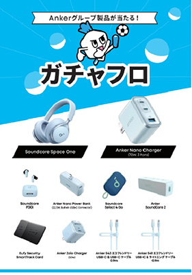 ガチャフロの中に“当たり券”が入っていればお宝ゲット!! また、すでに完売しているガチャフロも特別に入っていたり、アンカー・ジャパンエキサイトマッチを記念して特別に当日限定でAnker製品がGETできるかも!?