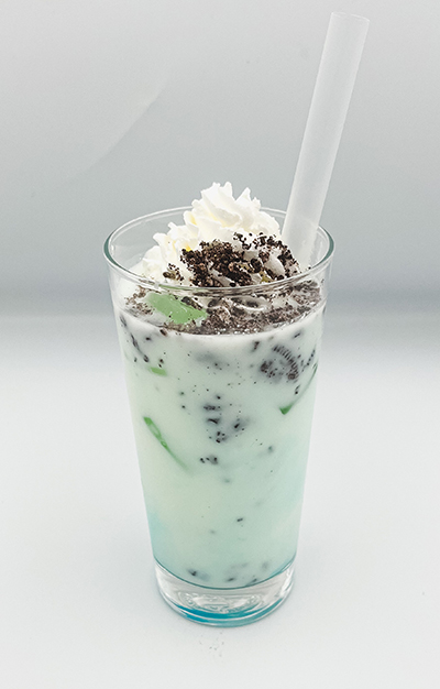 ふろん太くんがサッカーをしている様子から、飲むごとに見た目も味も変わっていきます! 初めは甘く、途中でさっぱり、最後はクリーミー! ずっと飽きずに楽しめるドリンクです。