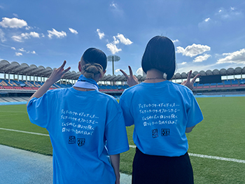 バックには、Gt.Vo 宮崎朝子さんによる手描きチャント歌詞がプリント!!