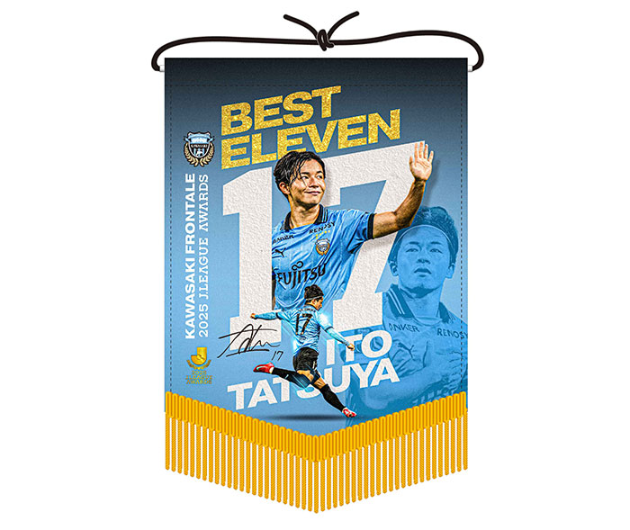 川崎フロンターレでは、12月11日(木)に開催されました「2025Jリーグアウォーズ」にて伊藤達哉選手がベストイレブンに選出されたことを記念して、伊藤達哉選手「2025 MEIJI YASUDA J.LEAGUEベストイレブンメモリアルグッズ」を川崎フロンターレオフィシャルWEBショップにて販売いたしますので、お知らせいたします。