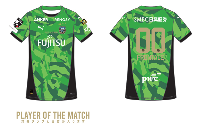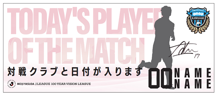 明治安田J1百年構想リーグユニフォームに試合の勝利に貢献した選手のネーム・ナンバーをゴールドにした特別仕様。運が良ければ選手直筆サイン入りアクリル色紙が手に入ります!!