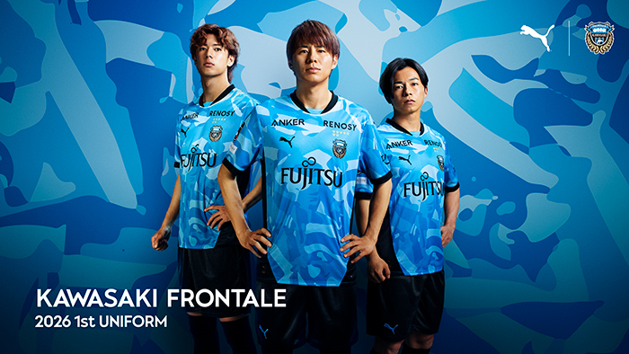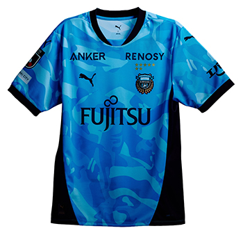 クラブの象徴であるフロンターレブルーを、濃淡のグラデーションで描いたカモフラージュに採用。