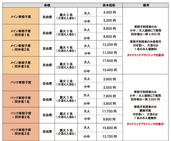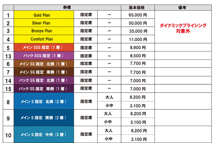 ※同伴者の方は、各販売席種一律価格にて販売いたします。