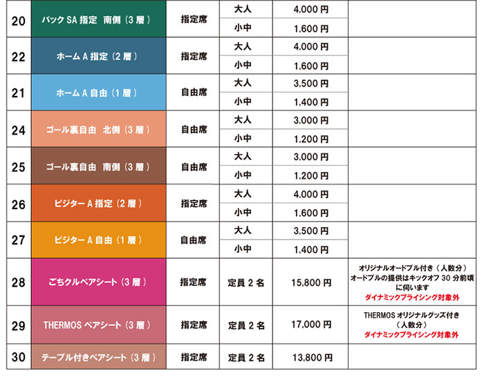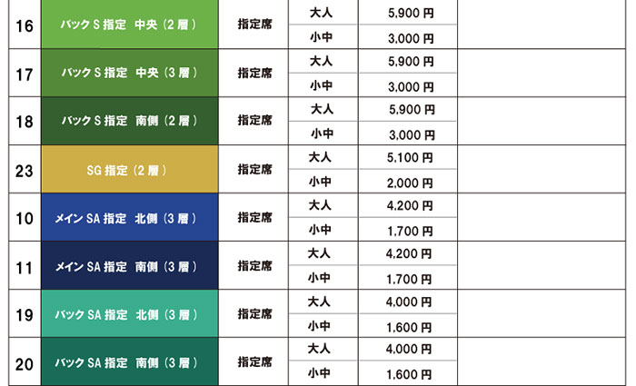 ※座席位置によってはパートナー看板、中継用テレビカメラなどの影響でピッチが見えづらくなる場合がございます。