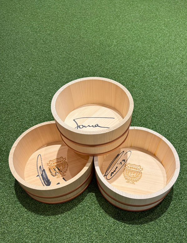 ◇千年賞(ゴールド):選手直筆サイン入りアズーロ・ネロ店内装飾 フロ桶(非売品)