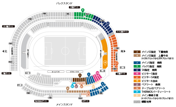 ※各入場ゲートに設けられた「再入場ゲート」より、一時退場および再入場が可能となります。ただし、一時退場についてはキックオフ30分前までとなりますので、ご注意ください。