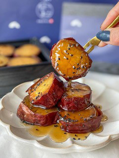 無形文化財である常滑焼の技法を駆使した「焼き芋専用の壺」で、厳選されたさつまいもを2時間かけて丁寧に焼き上げます。熟成芋と高級備長炭を使用した「つぼ焼き芋」は、とろけるような食感と濃厚な甘さがお口の中いっぱいに広がります。